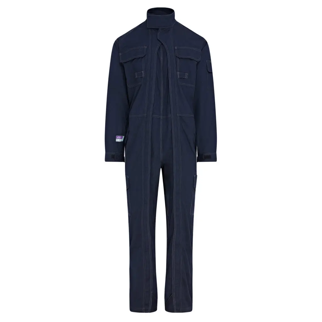 A premium, lightweight twin zip navy coverall offering FR AS EA protection for wearers.