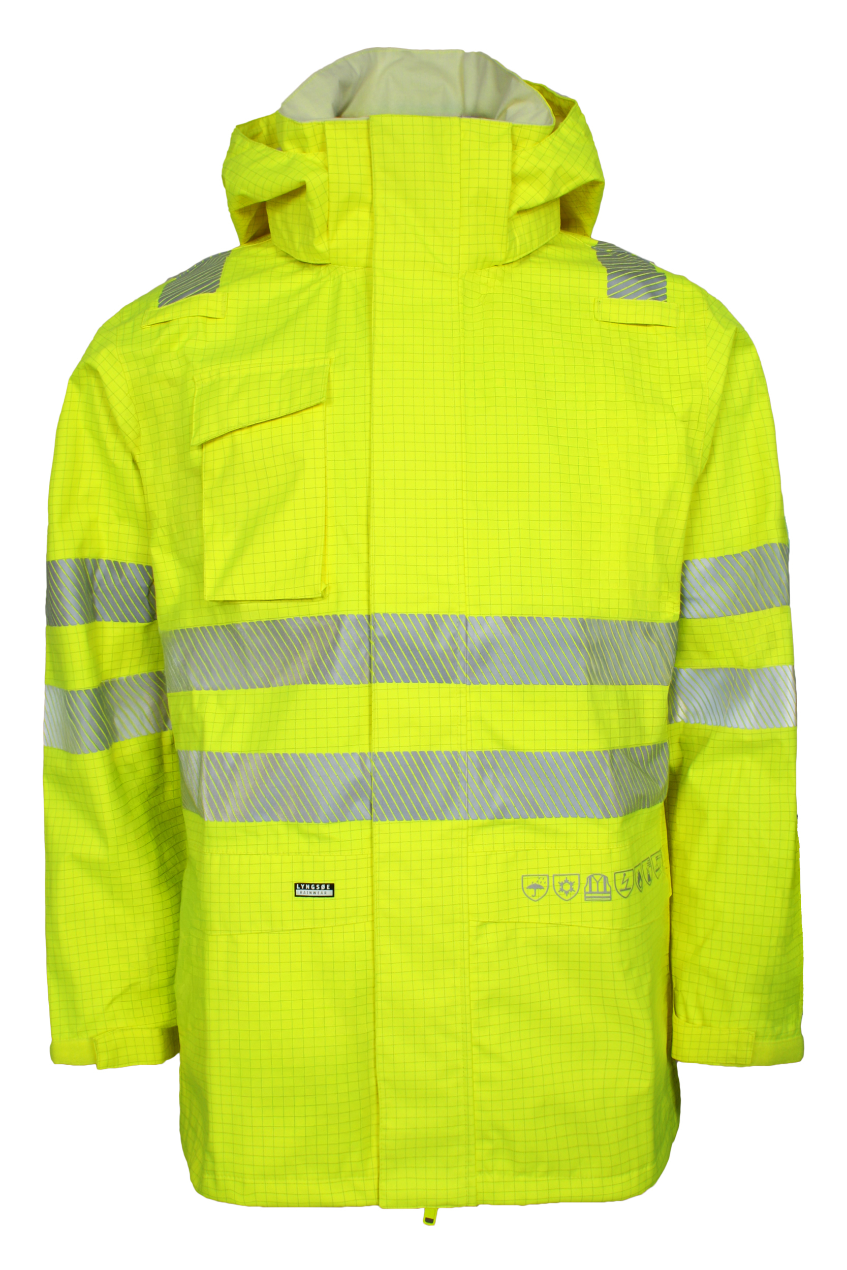 A reliable, protective, and highly visible jacket for industrial and high-risk work environments.