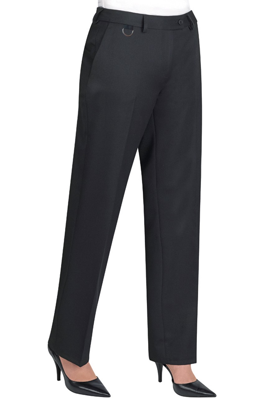 These trousers are machine washable and designed with a straight leg and slim waistband, featuring belt loops, a key loop, two side pockets and mock rear pockets. At size 12R the half hem width measures 22 cm. They are made from 100% superfine polyester, 43% of which is recycled.